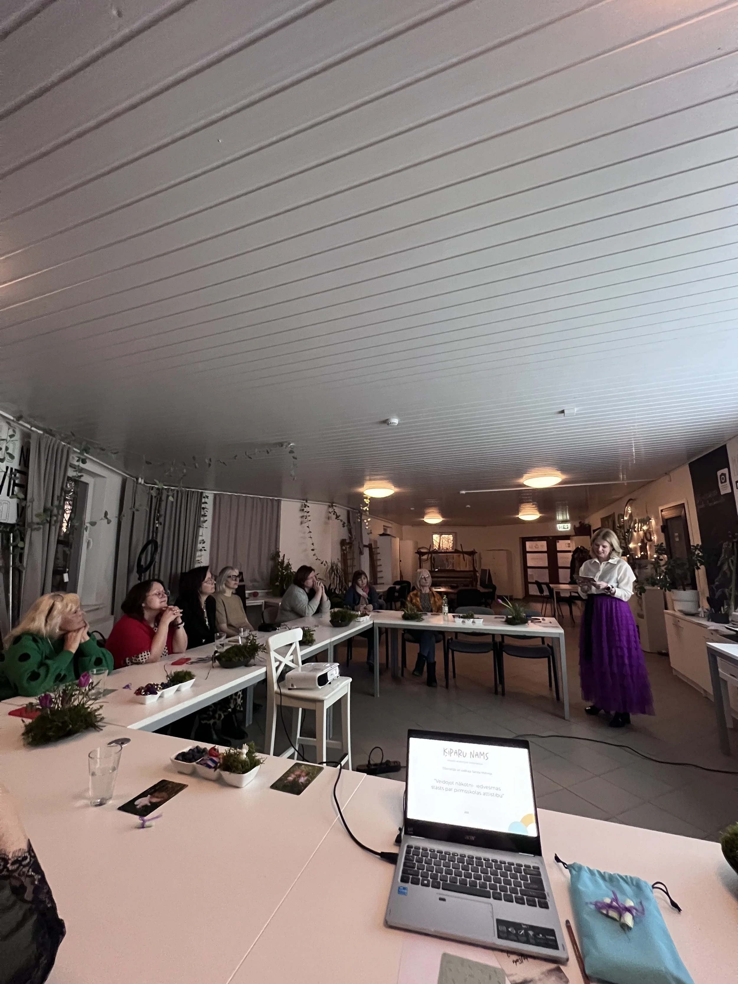 Vakara gaitā Sanda prasmīgi iesaistīja klātesošās sarunās, rosinot dalīties ar saviem stāstiem un sievišķīgo dzīves pieredzi. Dalībnieces sagaidīja arī vairāki pārsteigumi un uzdevumi, kas veicināja savstarpēju tīklošanos un jaunu kontaktu veidošanos.